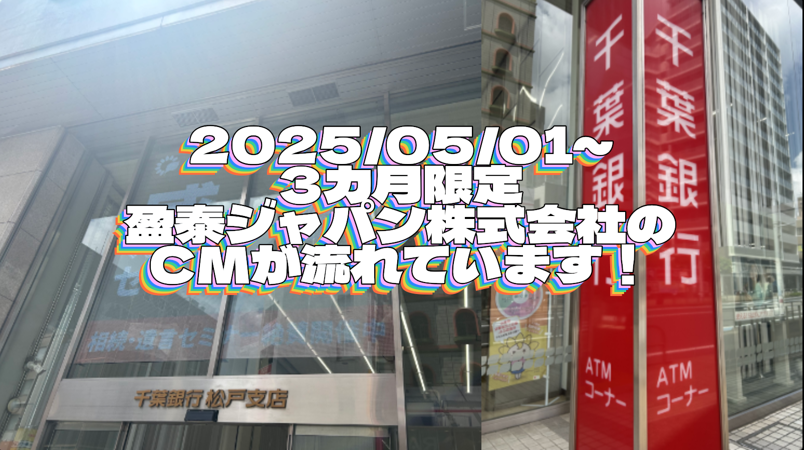 2025年5月1日(木)~ 3カ月間限定で盈泰ジャパンのCMが千葉銀行松戸支店の入り口上にあるデジタルサイネージで流れています!